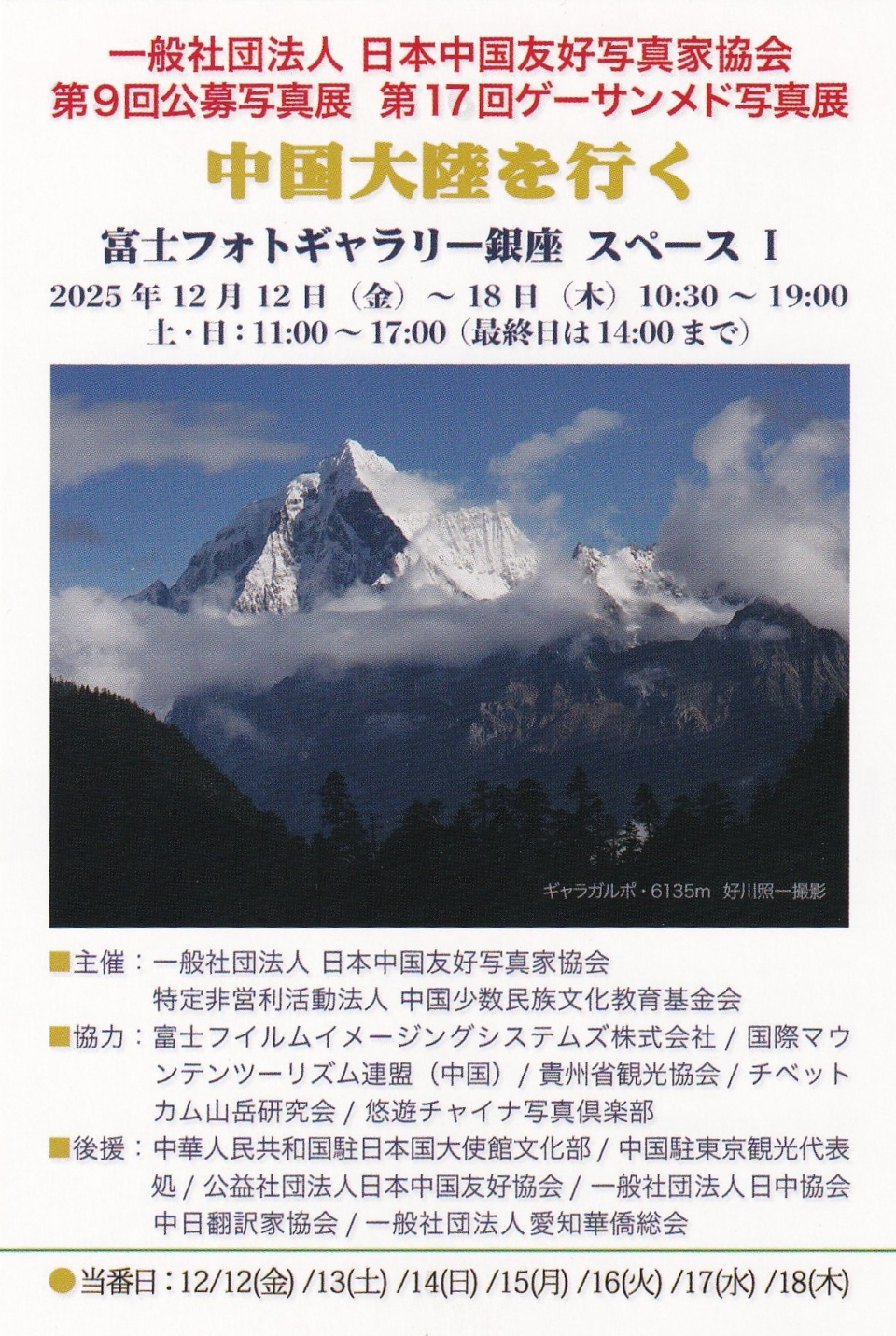 この度『一般社団法人日本中国友好写真協会 第9回公募写真展 中国大陸を行く』の展示に参加させて頂く運びとなりました。